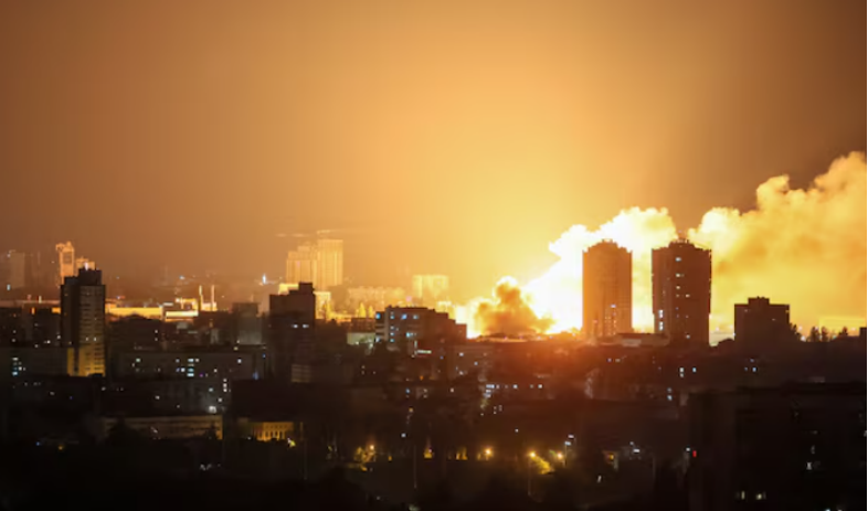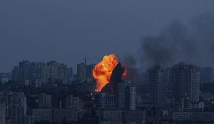 在俄罗斯空袭中起火的乌克兰城市。